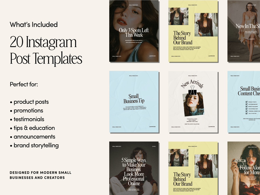 Built with refined typography, soft color palettes, and modern editorial layouts, these templates help you create a cohesive Instagram feed that feels elevated, professional, and visually consistent.